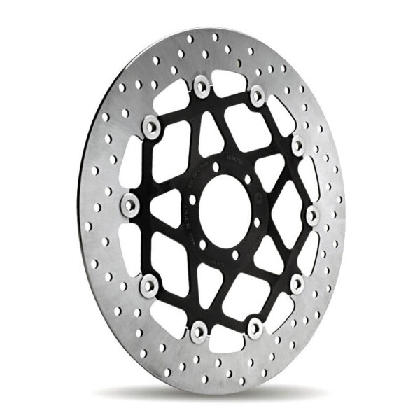 Floating, drilled contour made of stainless steel with black anodized aluminium inner flange.