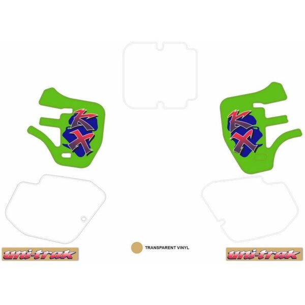 Printed on high quality vinyl material. Stickers for radiator cover, swingarm and number plate