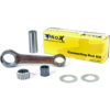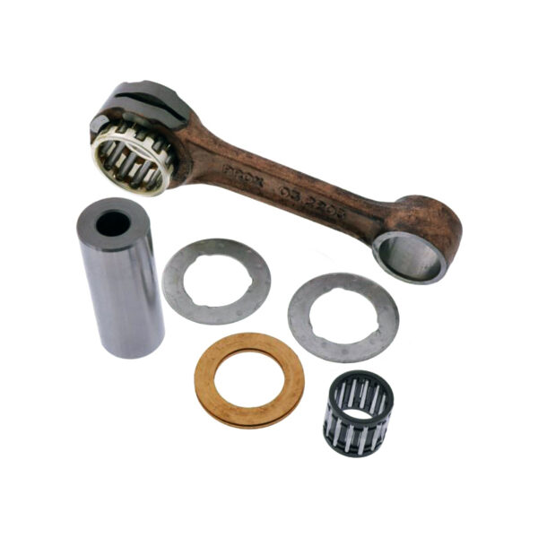 Kit biella completa ProX Racing Parts prodotto in lega di acciaio forgiato: specifiche e tolleranze pari a quelle dei ricambi originali. Kit completo di: biella boccola albero, gabbia a rulli grande, gabbia a rulli piccola e rondelle di spessore